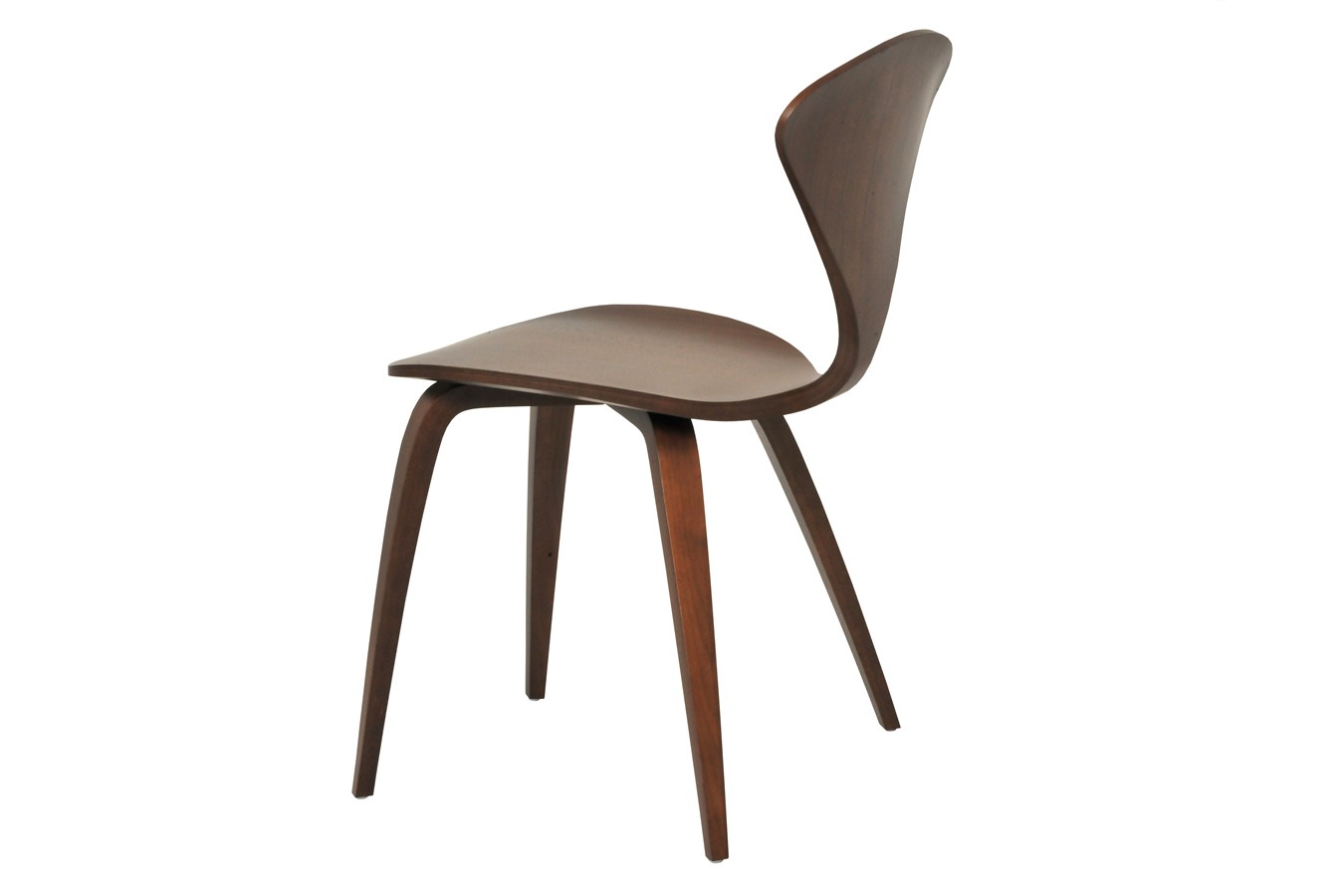 Avec ou sans accoudoir, on apprécie la finition en contreplaqué moulé délicatement courbés. Tout en noyer, les assises de cette gamme semblent à la fois robustes et légères. Idéales pour un cadre informel comme une table de dîner, on les adopte également pour un décor plus formel comme l’aménagement d’un bureau.