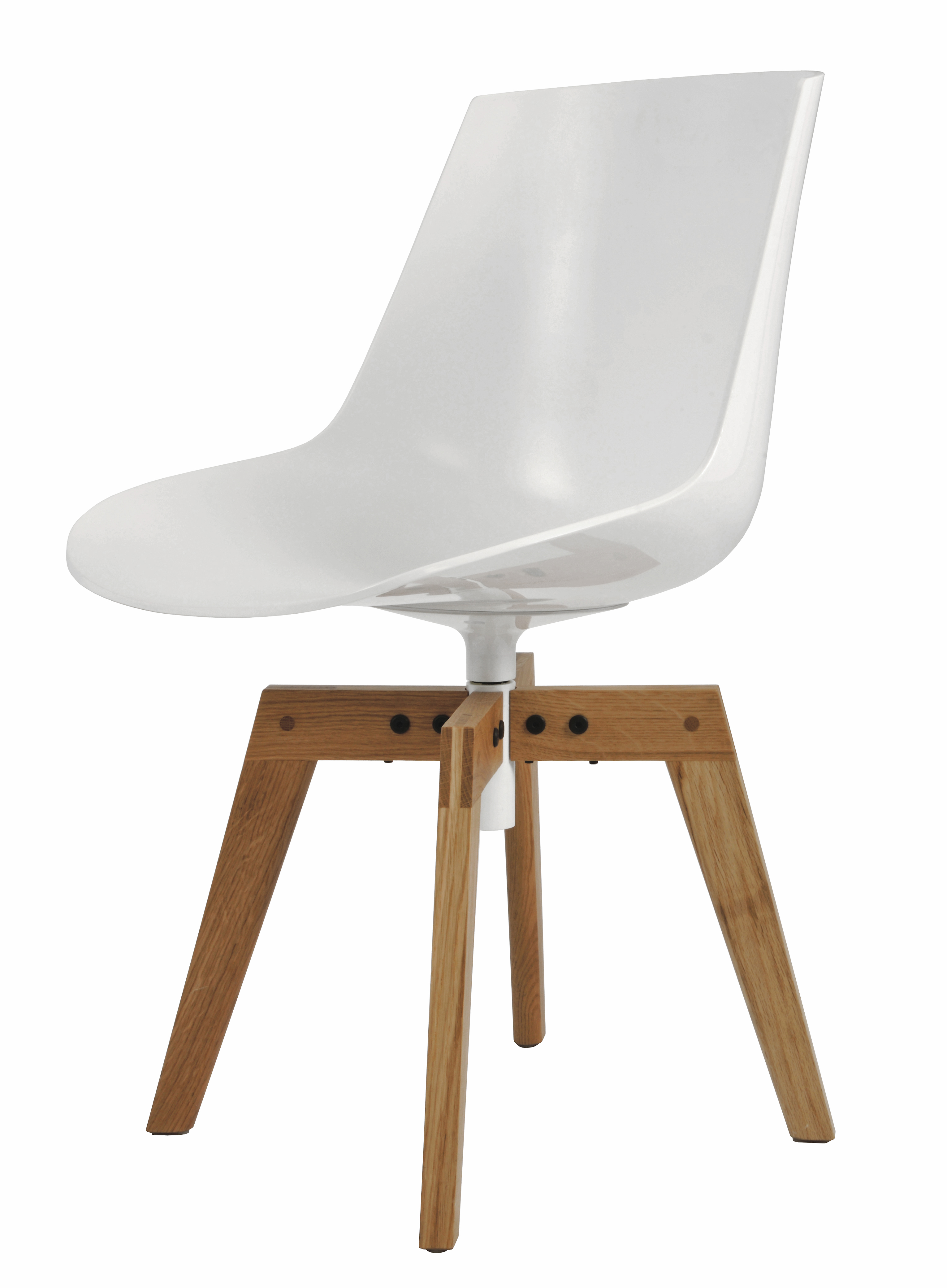 Le concept : un piètement en chêne à 4 branches, sur lequel vient s’intégrer avec subtilité une coque enveloppante en polycarbonate. Plus originale, l’assise est pivotant à 360°; pour une mobilité extrême. A la fois sobre et élégante, la chaise Flow s’adapte à tous les types d’espaces. Installée en grand nombre en format restaurant ou autour d’une grande table de réunion, elle évolue aisément dans un décor naturel aux tons de bois et de blanc.