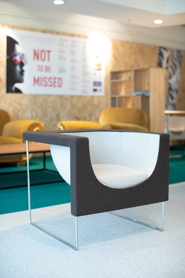 Mobilier idéal pour les espaces collectifs, le fauteuil Nube trouve également sa place dans des pièces plus confidentielles comme un bureau ou une loge.