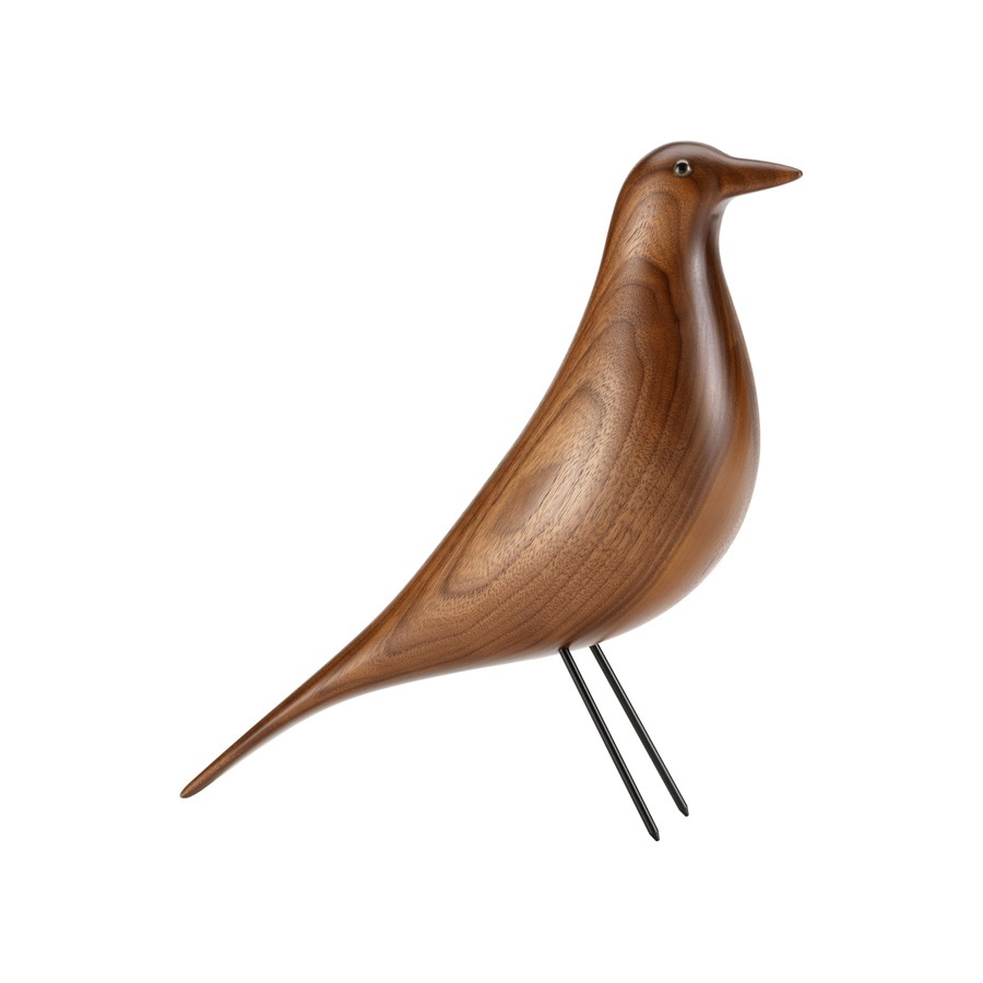 Cet accessoire allie charme et style folk américain : c’est un objet insolite et original pour la décoration devenu best-seller de la marque Vitra. Imaginé par Charles et Ray Eames, il permet un aménagement d’intérieur singulier et très convivial accentué par la matière en bois de noyer de l’objet. Pendant des décennies, un oiseau sculpté en bois noir a occupé une place centrale dans la Eames House, un objet particulièrement apprécié parmi les effets personnels de Charles et Ray Eames.